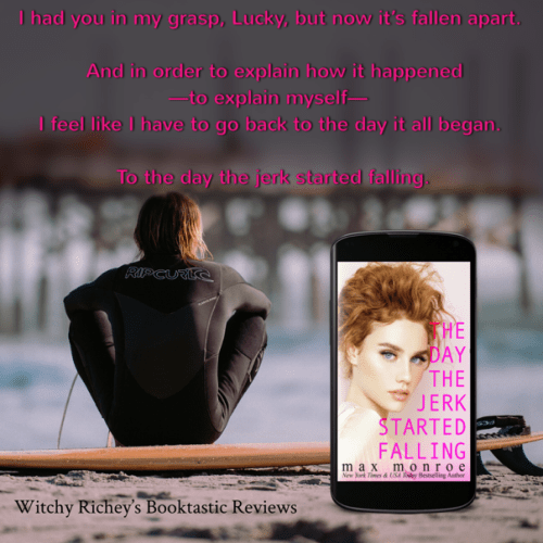 He’s not ashamed of who he is or how he lives, he’s unapologetic for the way he fell bum over elbows when she dropped on his head like an anvil and I’m pretty sure I could read his words (listen to him talk) forever cause I hear his deep Aussie timber in my head like a siren song. I’d like to shove Lucky out of the way and beg for him to take me for a ride on his ..ahem..board and I’d really help him make some epic waves (wink).